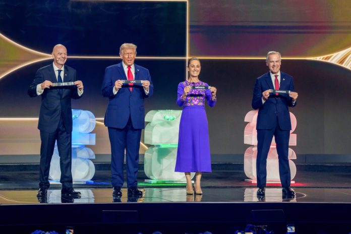 Mark Carney, Donald Trump e Claudia Sheinbaum estiveram juntos no sorteio do Campeonato do Mundo da FIFA 2026 que decorreu a 5 de dezembro. Carney e Trump aparentaram dar-se bem.