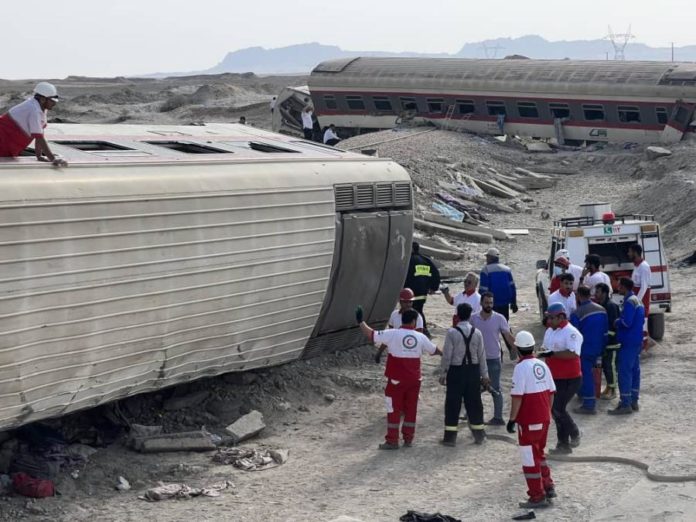 De acordo com as autoridades locais, o acidente ocorreu quando o comboio, que transportava cerca de 350 passageiros, atingiu uma escavadora e acabou por descarrilar nos arredores de Tabas.