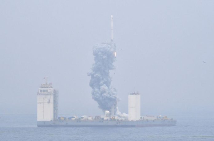 Este lançamento é o 306.º da série Long March 11 — foguetão chinês — mas é o primeiro a ser feito no mar.