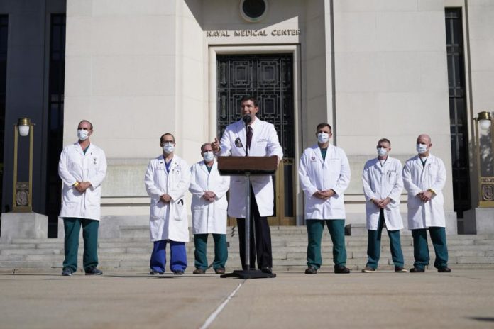 Sean Conley falava numa conferência de imprensa junto do Hospital Militar Walter Reed, onde Trump foi internado na sexta-feira como medida de precaução.
