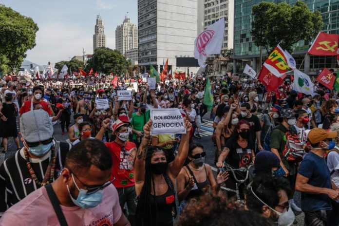 Segundo a agência France-Presse (AFP), no centro do Rio de Janeiro, cerca de 10.000 pessoas participaram no protesto, organizado por movimentos de esquerda e estudantis, gritando “Fora Bolsonaro” e “Genocídio de Bolsonaro”, numa referência às vítimas da covid-19 no Brasil.