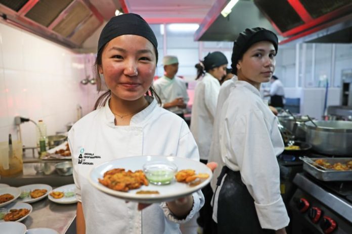 Na cozinha da escola, que funciona como sala de aula, o grupo de 15 alunos, onde está Arshpreet, prepara pratos nepaleses e indianos, mas é a gastronomia portuguesa que mais a conquista.