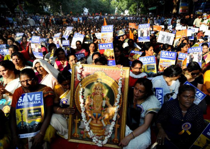 Tradicionalistas hindus manifestaram-se imediatamente contra a entrada das mulheres em idade fértil no templo hindu, levando a polícia indiana a utilizar gás lacrimogéneo, granadas atordoadoras e canhões de água para deter os manifestantes.
