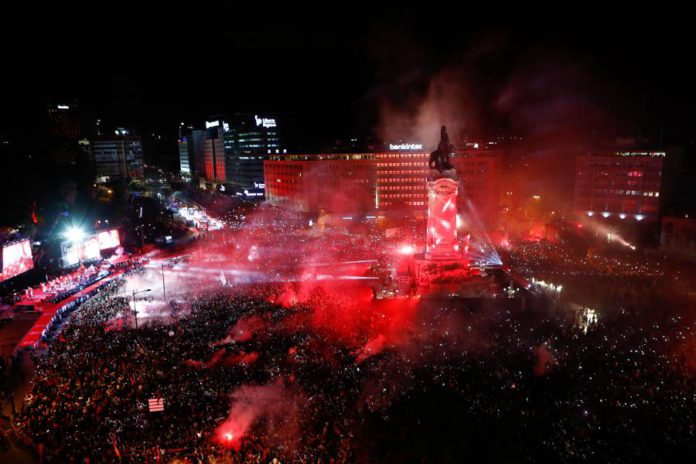 Com bandeiras, cachecóis e camisolas se pintou um ‘mar encarnado’ no coração da capital portuguesa, desde a Praça Marquês de Pombal até às avenidas circundantes.