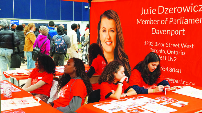 A deputada federal Julie Dzerowicz estava fora do país, mas foi representada pelos seus colaboradores e voluntários.