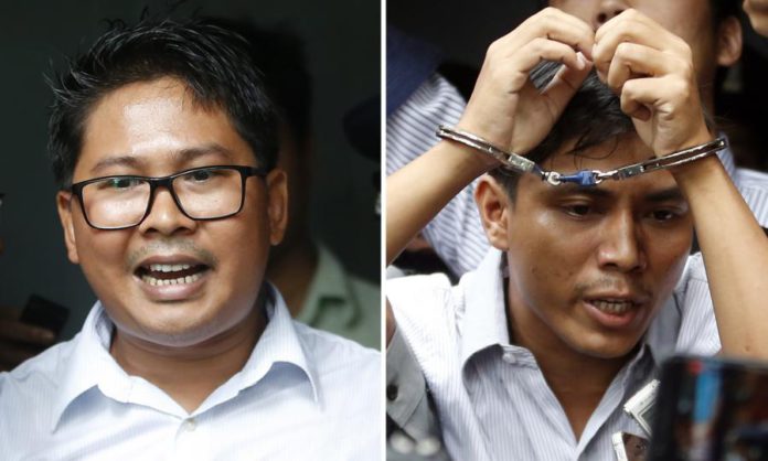 Wa Lone, de 32 anos, e Kyaw Soe Oo, de 28, eleitos este mês “Figuras do Ano” pela revista Time, foram sentenciados no início de setembro, numa sentença de primeira instância, a sete anos de prisão, acusados de violarem segredos de Estado.
