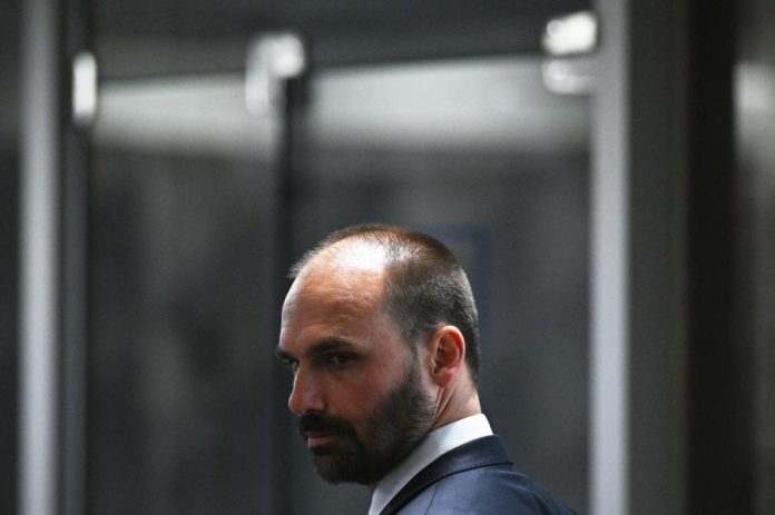 Eduardo Bolsonaro, deputado em exílio voluntário nos Estados Unidos, considerou as acusações infundadas e descreveu-as como perseguição política.