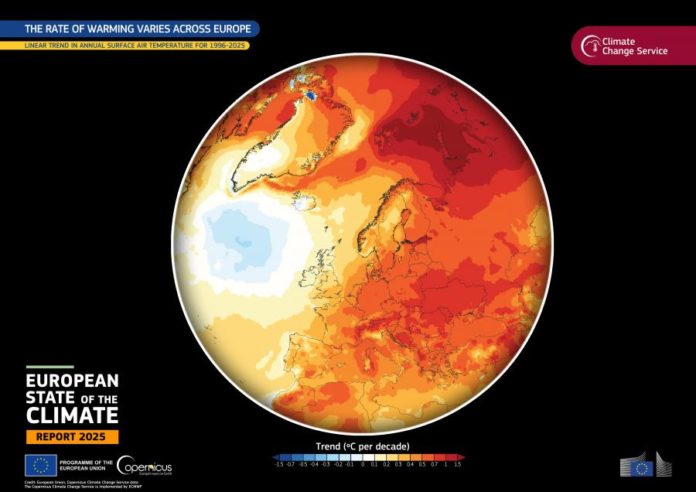 Lisboa, 29 abr 2026 (Lusa) — A temperatura em 2025 esteve acima da média em 95% do continente europeu e a temperatura da superfície do mar, na região europeia, foi a mais elevada de sempre, revela um relatório divulgado hoje.