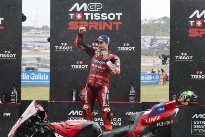 Jerez de la Frontera, 25 abr 2026 (Lusa) — O espanhol Marc Márquez (Ducati) venceu hoje a corrida sprint do Grande Prémio de Espanha, quarta ronda do Mundial de MotoGP, a primeira da história em que os pilotos tiveram de trocar de mota devido à chuva.