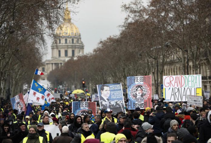 Paris, 19 jan (Lusa) – Milhares de “coletes amarelos” manifestaram-se hoje, pelo décimo sábado consecutivo, em toda a França, apesar do “grande debate” nacional iniciado pelo Presidente Emmanuel Macron, visando apaziguar o descontentamento popular que dura há dois meses.