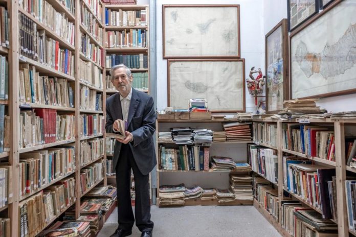 “Já viu aqui o meu alfarrabista? Foi a última oficina a ser construída”, aponta Manuel João, no meio de um pequeno espaço entupido por centenas de livros, numa visita guiada ao espaço de mil metros quadrados.