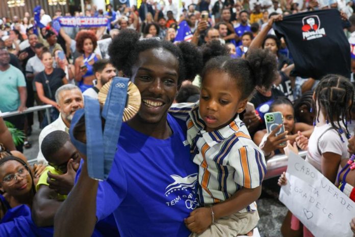 Lisboa, 13 ago 2024 (Lusa) — O pugilista David Pina, que conquistou a primeira medalha olímpica da história de Cabo Verde, em Paris2024, foi recebido, na segunda-feira, em Lisboa em festa, com direito a batuqueiras, que o deixaram com os olhos a brilhar.