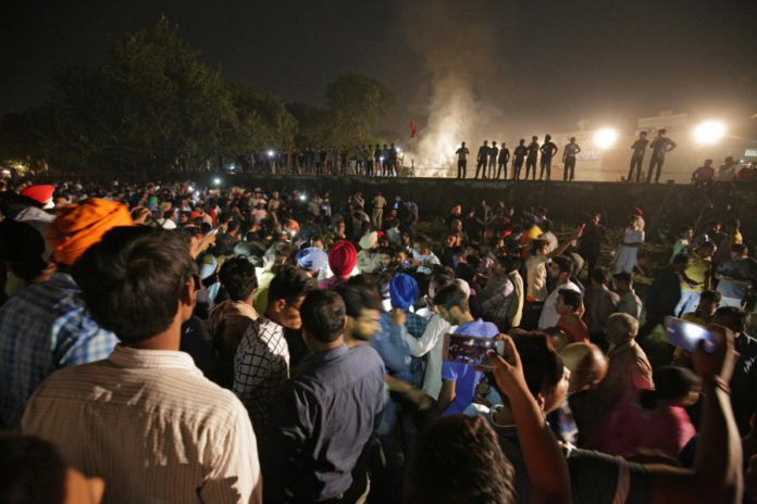 As vítimas estavam a ver o fogo de artifício durante um festival religioso, tendo-se amontoado em cima da linha de caminho de ferro nos arredores de Amritsar, quando foram colhidas pelo comboio em grande velocidade.