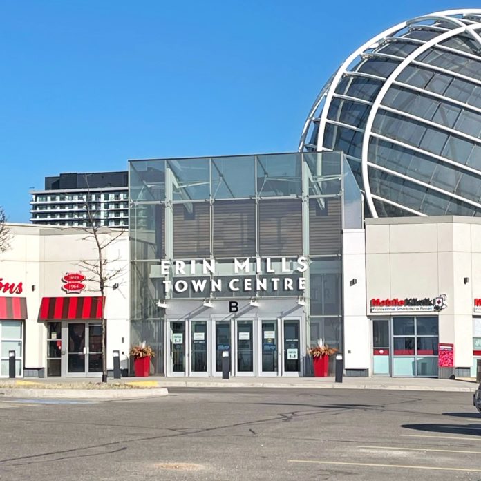 A polícia Regional de Peel foi chamada ao centro comercial, na Erin Mills Parkway, por volta das 5:45 pm, devido a relatos de um assalto.