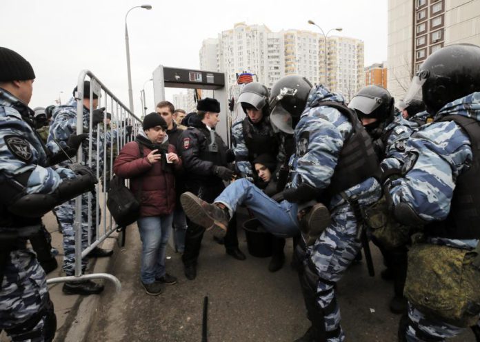 Os manifestantes planeavam usar palavras de ordem contra o Governo como “Putin é um ladrão” e “Liberdade para os presos políticos”.