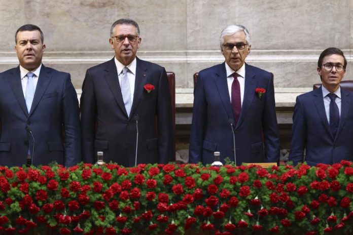 Lisboa, 25 abr 2026 (Lusa) — O Presidente da República chegou hoje ao parlamento de cravo vermelho na lapela, para a sessão solene do 25 de Abril, com representantes da CGTP e UGT nas galerias numa altura em que se debate o futuro do trabalho.