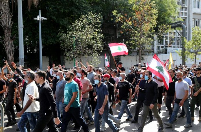 O Hezbollah e o movimento Amal convocaram a manifestação para exigir a substituição do juiz Tareq Bitar, que está determinado a questionar vários políticos de todos os quadrantes, incluindo os dois ex-ministros do Amal.