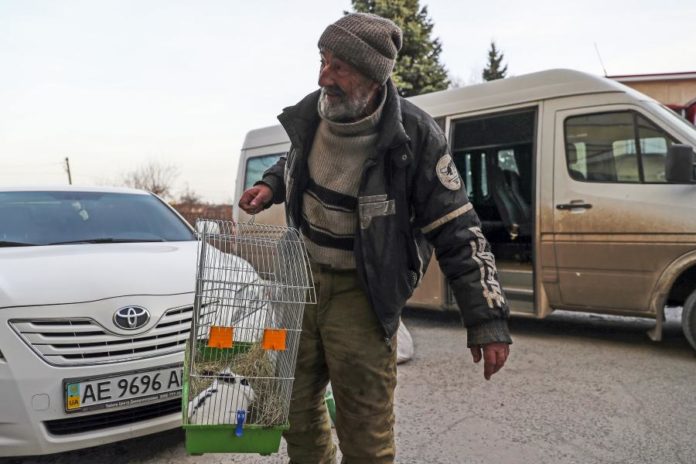 De barrete escuro, roupa escura e barba branca escurecida pela fuligem, Ivan Ovna, 66 anos, é a face derrotada dos civis que fogem da guerra. “Só ouvia explosões, bombas, tiros. A minha casa, que construí com as minhas mãos depois de me reformar, já não existe”, desabafa em russo, falando rápido como se tentasse descrever a violência que viveu.