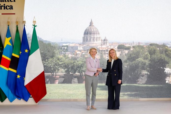 Ursula Von der Leyen copreside hoje, juntamente com a primeira-ministra italiana, Giorgia Meloni, a uma cimeira sobre a cooperação com África, intitulada “O Plano Mattei para África e o Portal de Entrada Global: Um esforço comum com o continente africano”, na qual o continente africano é representado pelo Presidente de Angola, João Lourenço, atualmente presidente em exercício da União Africana, estando também presentes líderes da Zâmbia, República Democrática do Congo e Tanzânia, e ainda instituições como o Fundo Monetário Internacional (FMI), Banco Mundial e Banco Africano de Desenvolvimento (BAD).